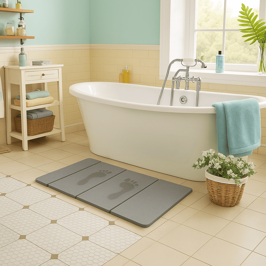 The Foldable Stone Bath Mat absorbs water instantly and dries quickly. Designed for bathrooms, kitchens, and dish-drying areas, it keeps surfaces clean and dry while its flexible foldable structure ensures easy storage and modern functionality.